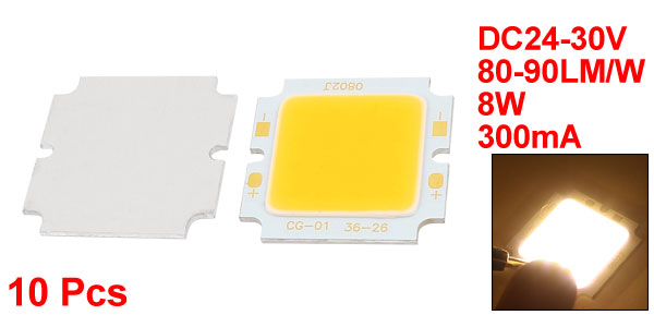 Product Name COB LED Lamp Beads Rated Voltage DC24-30V Luminous Flux 80-90LM/W Color Temperature 2800-3000K Power 8W Current 300mA Light Color Warm White Material Aluminum Color Silver Tone, Orange Size 36 x 36mm/ 1.4" x 1.4" (L*W) Luminous Surface 26 x 26mm/ 1" x 1"(L*W) Weight 63g Package Content 10 x COB LED Lamp Beads - Reviews