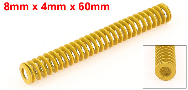 Product Name Die Spring Size 8 x 4 x 60mm/ 0.31" x 0.16" x 2.4"(OD* Inner Dia * L) Materials Chromium Alloy Steel Color Yellow Net Weight 5g Package Content 1 x Die Spring - Reviews