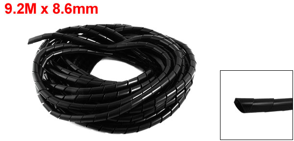 9.2 Meter 30.2ft 8.6mm Inner Dia Spiral Wrapping Bands Cable Manager Black