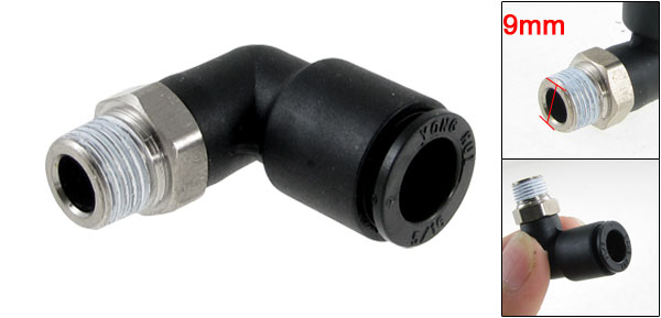 Product Name Pneumatic Quick Fitting Type Elbow Type One Touch Connector 8mm/ 5/16" Thread Connector 9mm/ 9/25" Material Plastic, Metal Size(Approx.) 2.8 x 2.8 x 1.4cm/ 1.1" x 1.1" x 0.6"(L*W*T) Main Color Black Weight 12g Package Content 1 x Pneumatic Quick Fitting  - Reviews