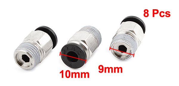 9/25" Male Thread 4mm Connector Dia.One Touch Tube Push in Quick Fittings 8 Pcs