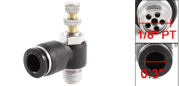 Product Name Pneumatic Speed Controller Fit Tube OD 8 mm / 0.3" Male Thread OD 9.7 mm / 1/8" PT Overall Size 4 x 3.3 x 1.5 cm / 1.6" x 1.3" x 0.6" (L*W*H) Material Plastic, Metal Color Black, Silver Tone Weight 20g Package Content 1 x Pneumatic Speed Controller - Reviews