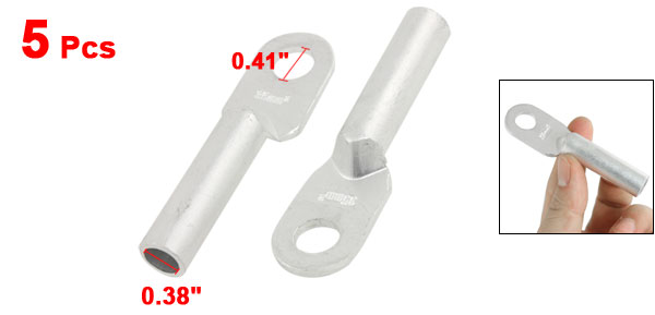 Details9.7mm Tube Inside Dia Ring Crimp Lug Aluminum Terminals Connector 5 Pcs  Product Name Aluminum Tube Terminals Type Ring Tongue Type Tube Hole Diameter 9.7 x 12mm / 0.38" x 0.47" (Inside Dia.*Outter Dia.) Crimping Lug Hole Diameter 10.5mm / 0.41" Size 77 x 21 x 12mm / 3.03" x 0.83" x 0.47" (L*W*D) Color Silver Tone