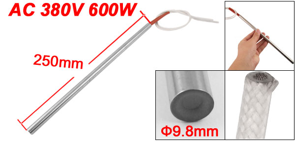 Product Name Cartridge Heater Material Stainless Steel, PVC, Nylon Rated Voltage AC 380V Power 600W Heater Size (Approx.) 9.8 x 250mm/ 0.38" x 9.8'' (D * L)