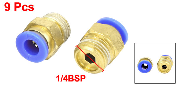 9 Pcs 1/4BSP x 6mm Push in Pneumatic Air Quick Connect Tube Fitting Coupler