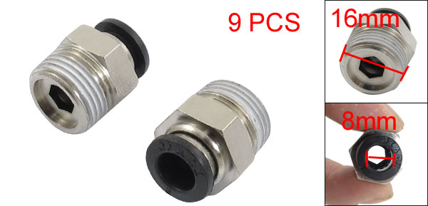 9 Pcs 3/8" PT Male Thread 8mm Push In Joint Pneumatic Connector Quick Fittings