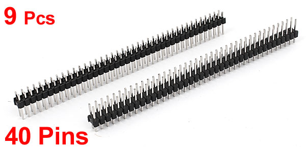 Product Name Pin Header Pins 40 Pin (2*40 Pin) Type of Row Dual Rows Connector Style Straight Connectors Male Pin Length 11mm/0.43" Pin Pitch 2.54mm Total Length 100mm/4" Material Plastic, Metal Color Black, Silver Tone Weight 38g Package Content 9 Pcs x Pin Headers - Reviews