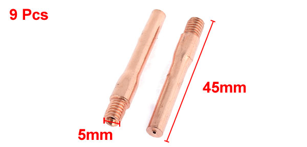 9 Pcs 45mm Long 0.8mm Hole Copper Tone CO2 Welding Torch Nozzle Tip
