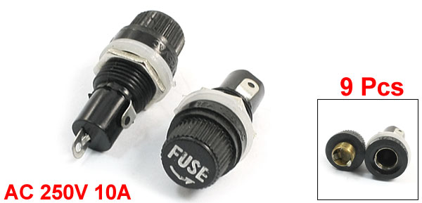 9 Pcs AC 250V 10A Black Screw Cap Panel Mounted Fuse Holder 5mm x 20mm