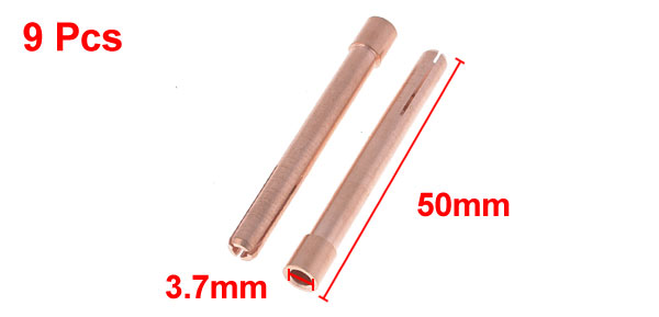 Product Name Contact Tip Fit for WP18 Argon Arc Welding Torch Material Copper Clamp Hole Diameter 1.8mm / 0.07" Inner Hole Diameter 3.7mm / 0.145" Total Size 50 x 6mm/2" x 0.2"(L*Max.D) Color Copper Tone Weight 60g Package Content 9 x Contact Tips - Reviews