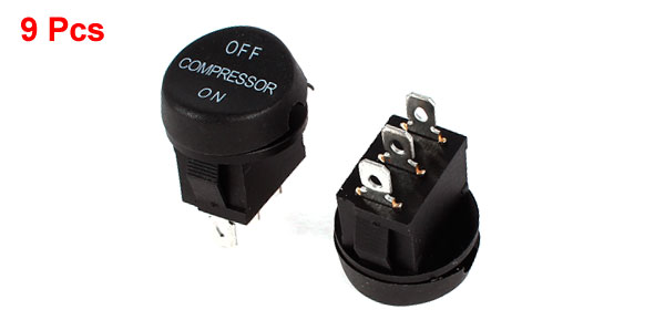 9 Pcs SPDT Black Mushroom Button On/Off Rocker Switch AC 250V/125V 6A/10A