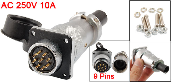 Details9-Pin Waterproof Electrical Deck Circular Connector 10A AC 250V  Product Name Circular Connector Model PLS20-9 External Material Metal, Rubber Pin Quantity 9 Working Voltage AC 250V Withstand Voltage AC 1500V Current 10A Insulation Resistance 500m Ohm Contact Diameter 1mm Head Diameter 20mm Hole Diameter 3mm/ 0.12" Overall Size 97 x 28 x 28mm/ 3.8" x 1.1" x 1.1" (H*L*W) Color Silver Tone, Black Net Weight 97g Package Content 1 x Circular Connector Install Part