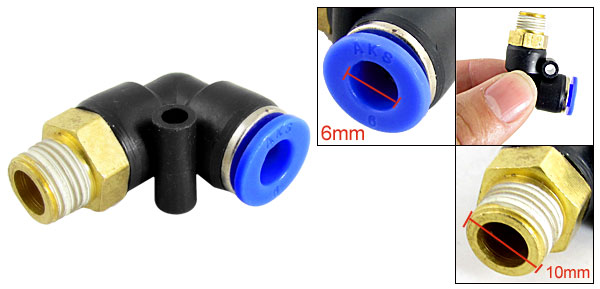 Item Name Quick Fittings Total Size 30 x 25x 12mm/ 11.8" x 1" x 0.5" (L*W*H) Size 10mm (Thread) x 6mm (the Other End Hole) Material Nickel-plated Brass & Plastic Color Black, Gold Tone, Blue Weight 12g Package Content 1 x Quick Fittings - Reviews