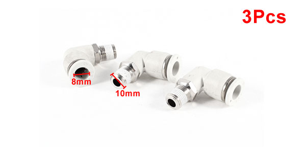 90 Degree Angle 8mm Hole 10mm Thread Pneumatic Quick Fitting Connector 2 Pcs