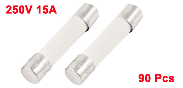 90 Pcs 250V 15A 6mmx30mm Cylindrical Ceramic Tube Fuses Link