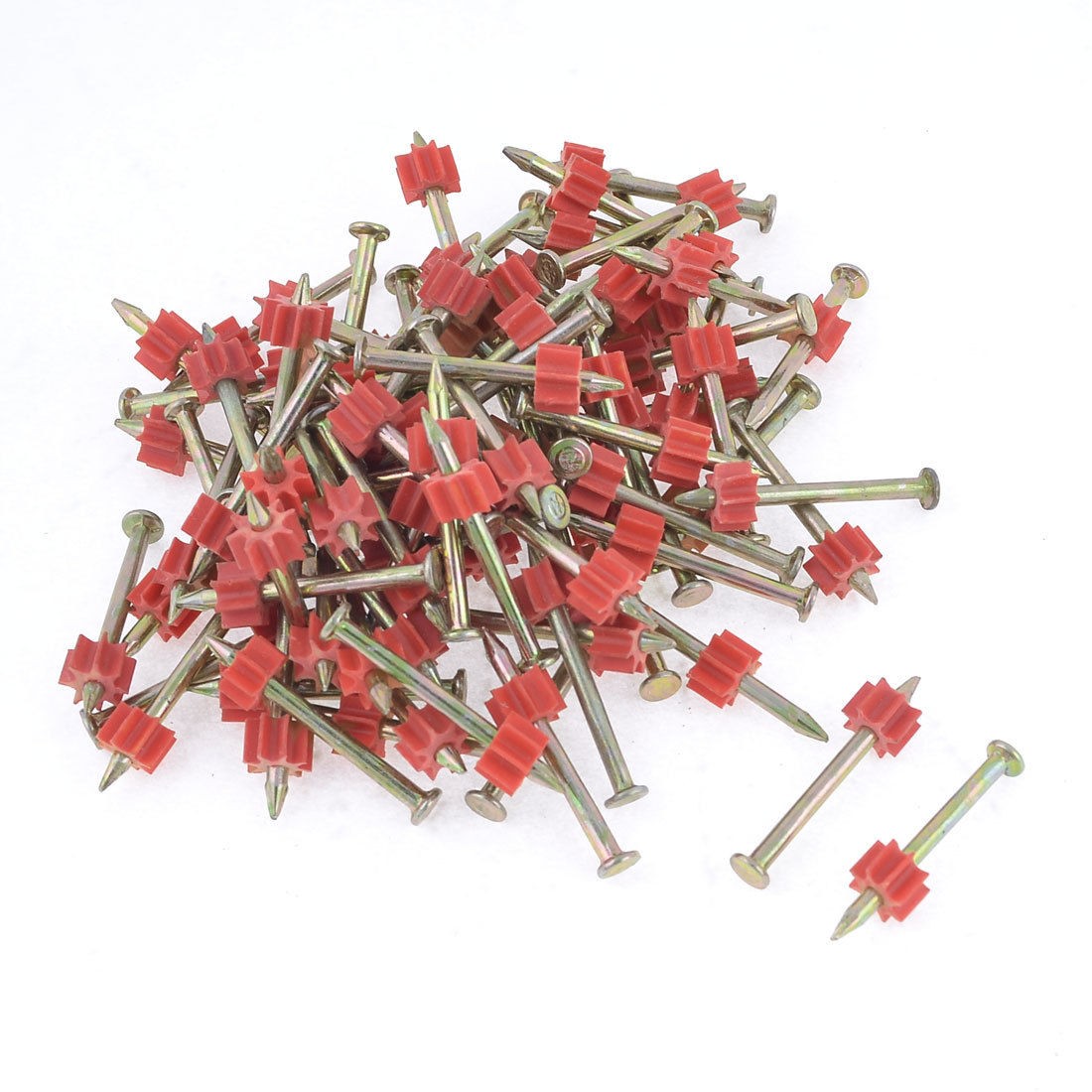 Product Name Power Hammer Pin Color Gold Tone, Red Material Metal, Plastic Tip Diameter 1.3mm/0.05" Shank Diameter 2.8mm/0.11" Overall Size 38 x 6mm/1.5" x 0.24" (L*Max. D) Weight 210g Package Content 90(±2%) x Power Hammer Pins - Reviews