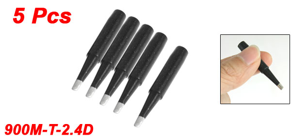 Product Name Soldering Iron Tip Model 900M-T-2.4D Material Metal Design Chisel Total Length 43mm/1.7" Shank Diameter 6mm Hole Inside Dia 4mm Chisel Width 2.5mm Color Black Weight 32g Package Content 5 x Soldering Iron Tip - Reviews