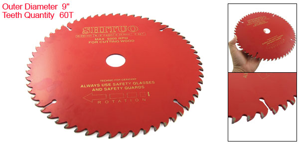 Product Name Cutting Blade Use for Wood Cutting Outer Diameter 230mm / 9" Teeth Quantity 60T Kerf Thick 2.6mm Middle Bore Dia. 25.4mm Speed (max.) 5000 RPM Material T.C.T Metal Net Weight 496.8g Package 1 x Cutting Saw Blade 1 x Metal Ring - Reviews