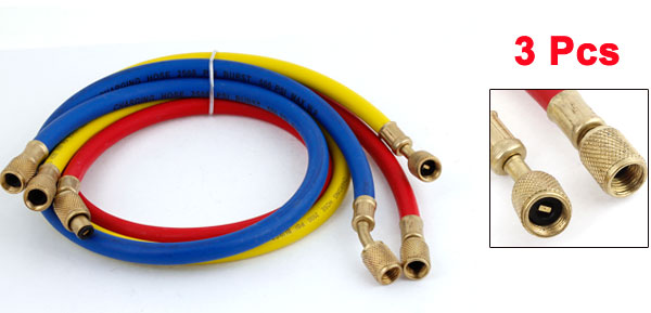 90cm Long Brass Thread Connector Both End Refrigeration Charging Hose 3 Pcs