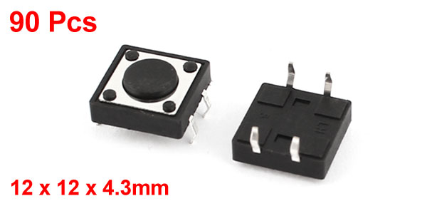 90Pcs Momentary 4 Pin DIP Pushbutton Tactile Tact Switches 12x12x4.3mm