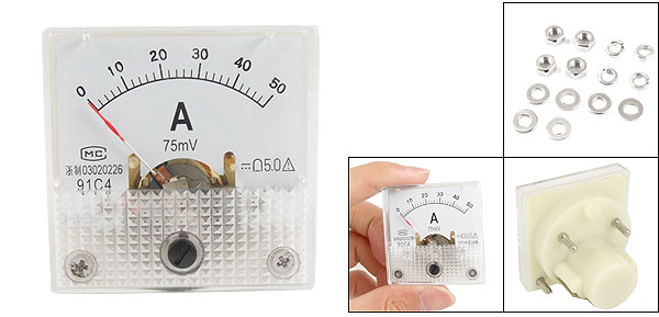 Product Name Analog Ammeter Model 91C4 Accuracy Class 5.0 Measuring Range DC 0-50A Meter Face Size(Approx) 4.4 x 4.4 x 0.8cm/1.7" x 1.7" x 0.3"(L*W*T) Thread Diameter 2.5mm/0.09" Overall Depth 3.5cm/1.37" Color As Picture Show Net Weight 36g Package Content 1 x Mini Analog Ammeter Installing Parts - Reviews