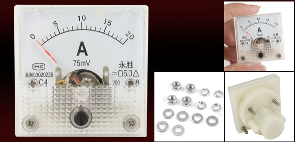 Product Name Analog Ammeter Model 91C4 Measuring Voltage Range DC 0-20A Meter Face Size(Approx) 4.4 x 4.4 x 0.8cm/1.7" x 1.7" x 0.3"(L*W*T) Thread Size 2.5 x 9mm/0.09" x 0.35"(D*L) Overall Depth 3.5cm/1.37" Color As Picture Show Net Weight 33g Package Content 1 x Analog Ammeter Installing Parts - Reviews