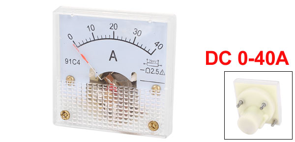 Panel Size 45 x 45 x 9mm / 1.7" x 1.7" x 0.35"(L*W*T) Main Color White, Clear Net Weight 32g Total Thickness 35mm / 1.4" Country of Manufacture CHINA Model 91C4 Package Content 1 x Analog Ammeter, Several Installing Parts Measuring Range DC 0-40A Material Plastic, Metal Accuracy Class 2.5 Mounting Thread Dia 3mm / 0.12" - Reviews