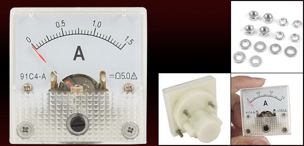 Product Name Analog Ammeter Model 91C4 Measuring Range DC 0-1.5A Meter Face Size(Approx) 4.4 x 4.4 x 0.8cm/1.7" x 1.7" x 0.3"(L*W*T) Thread Diameter 2.5mm/0.09" Overall Depth 3.5cm/1.37" Color As Picture Show Net Weight 33g Package Content 1 x Mini Analog Ammeter Installing Parts - Reviews