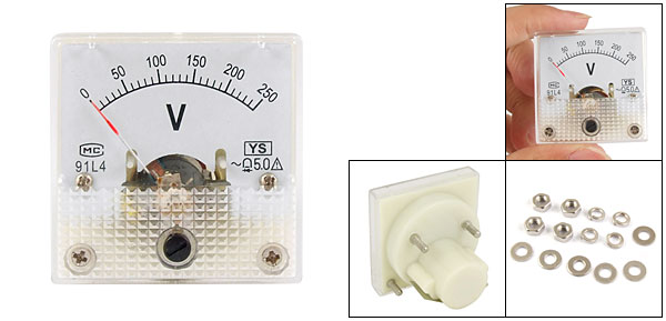 Product Name Analog Voltmeter Model 91L4 Measuring Range AC 0-250V Meter Face Size(Approx) 4.4 x 4.4 x 0.8cm/1.7" x 1.7" x 0.3"(L*W*T) Thread Diameter 2.7mm/0.1" Overall Depth 3.5cm/1.37" Color As Picture Show Net Weight 34g Package Content 1 x Mini Analog Voltmeter