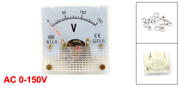 Main Color Beige, White, Clear Brand DMiotech Country of Manufacture CHINA Model 91L4 Screw Dia 2.7mm/ 0.1" Material Plastic, Metal Accuracy Class 2.5 Meter Face Size 45 x 45 x 9mm / 1.8" x 1.8" x 0.35" (L*W*T) Net Weight 33g Package Content 1 x Analog Voltmeter Screw Length 7.3mm/0.29", 8.4mm/ 0.33" Scale Range AC 0-150V Overall Depth 35mm/ 1.4" - Reviews