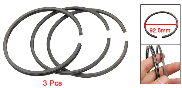Product Name Piston Ring Compatible for Air Compressor Including Balance Ring (2 Pcs) Seal Ring (1 Pcs) Inner Diameter 92.5mm / 3.641" Out Diameter 98.58mm / 3.881" Balance Ring Thickness 3mm / 0.118" Seal Ring Thickness 4.95mm/ 0.194" Material Metal Color Black Weight 73g Package Content Piston Ring Set(3 Pcs) - Reviews
