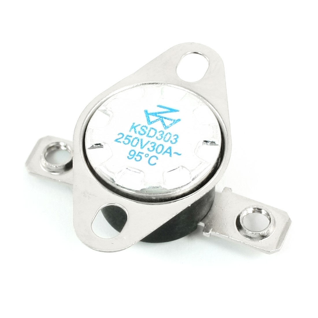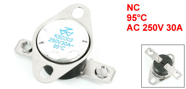 Product Name Temperature Control Switch Thermostat Model.No KSD303 Action Type NC Action Temperature 95C Voltage 30A AC 250V Size(Each) 3.5 x 3.3 x 1.3cm/1.4" x 1.3" x 0.51"(L*W*T) Material Metal, Plastic Color Black, Silver Tone Net Weight 6g Package Content 1 x Temperature Control Switch Thermostat - Reviews