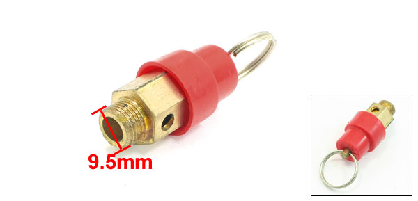 Product Name Pressure Relief Valve Material Plastic, Metal Color Red, Gold Tone Thread Diameter 9.5mm / 0.37" Ring Diameter 18mm / 0.7" Valve Total Size 3.5 x 1.8cm / 1.38" x 0.7" (L*Max.D) Weight 19g Package Content 1 x Pressure Relief Valve - Reviews