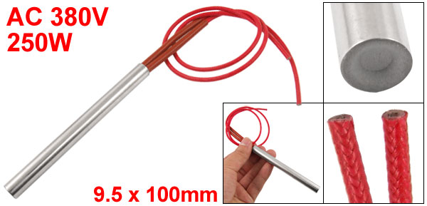 Product Name Cartridge Heater Material Stainless Steel, PVC, Nylon Rated Voltage AC 380V Power 250W Heater Size (Approx.) 9.5 x 100mm/ 0.37'' x 3.9'' (D * L)