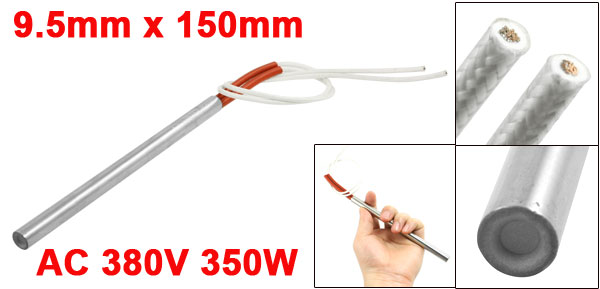 Product Name Cartridge Heater Material Stainless Steel, PVC, Nylon Rated Voltage AC 380V Power 350W Heater Size (Approx.) 9.5 x 150mm / 0.37" x 5.9" (D * L ) Wire Length (Approx.) 33cm / 13" Color Silver Tone, Red, White Weight 55g Package Content 1 x Cartridge Heater - Reviews