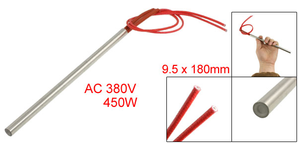 Product Name Cartridge Heater Material Stainless Steel, PVC, Nylon Rated Voltage AC 380V Power 450W Heater Size (Approx.) 9.5 x 180mm/ 3/8'' x 7“ (D * L)
