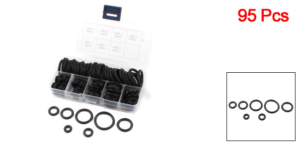 15Pcs: 14 x 7 x 3.5mmHolder Box Size 13 x 6.7 x 2.4cm/5.1" x 0.27 x 0.94"(L*W*H) Material Rubber Color Black Weight 98g Package Content 95Pcs x Oil Seal Ring Set
