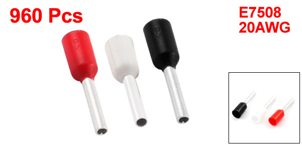 960 Pcs Red White Black Tube Head Pre Insulated Terminal E7508 20AWG