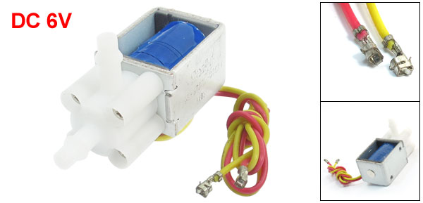 Product Name Solenoid Electromagnet Valve Rated Voltage DC 6V Rated Current 0.2A Power 1.2W Outlet Number 2 Outlet Size 2 x 4mm/0.08" x 0.16"(Inner Dia*Outer Dia) Total Size(Approx) 51 x 28 x 20mm / 2" x 1.1" x 0.8" (L*W*H) Wire Dia 1.3mm/0.5" Adapter Cable Length(Approx) 24.5cm /9.6" External Material Alloy, Electronic Parts Weight 43g Package Content 1 x Solenoid Electromagnet Valve - Reviews