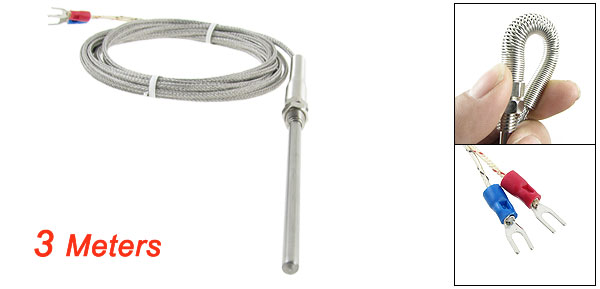 Product Name Thermocouple Probe Type K Type Fork Pin Number 2 Temperature Range 0°C-400°C Sensor Size 5 x 100mm/ 0.2" x 3.9" (D*L) Fork Pin Size 9 x 5mm/ 0.4" x 0.2"(L*W) Pin Spacing 4mm/ 0.2" External Shield Material Stainless Steel Shield Total Length(Approx.) 3 Meters / 9.8 Ft Color Silver Tone Weight 59g Package Content 1 x Earth Thermocouple Probe - Reviews