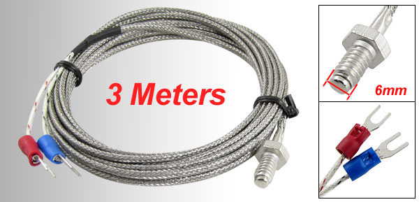Product Name Thermocouple Type K Type Temperature Range 0-400°C(32-752°F) Thread Diameter 6mm / 0.23" Internal Insulation Fibreglass External Shielding Metal Shield Total Length 3 Meters / 118" Fork Terminal Spacing 3.5mm / 0.13" Color As Picture Shown Weight 38g Package Content 1 x Type K Thermocouple - Reviews