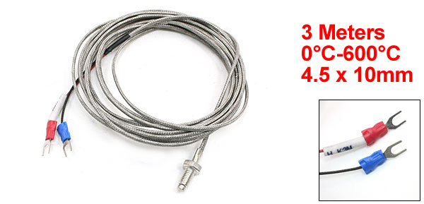 Product Name Thermocouple Probe Type K Type Fork Pin Number 2 Temperature Range 0°C-600°C Sensor Size 4.5 x 10mm/ 0.18" x 0.39" (D*L) Mounting Thread Dia 6mm/0.24" External Shield Material Metal Cable Length(Approx.) 3 Meter / 9.8Ft Weight 42g Package Content 1 x Thermocouple Probe - Reviews
