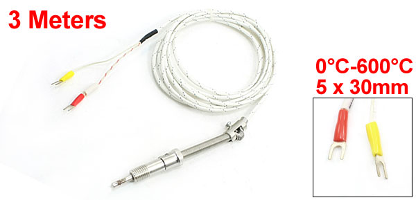 Product Name Thermocouple Model WRNT-01 Type E Type, Tension Spring Sleeve Temperature Range 0°C-600°C Probe Size 5 x 30mm/ 0.2" x 1.2" (D*L) Thread Diameter 12mm/ 0.47" Cable Length 3 Meters / 9.8Ft Material Metal, Nylon Net Weight 82g Package Content 1 x Thermocouple - Reviews