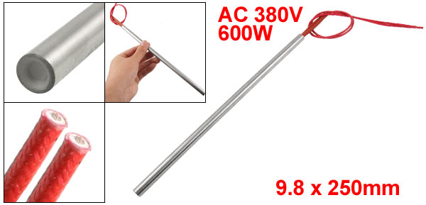 9.8mm x 250mm Red Wire Lead Cartridge Heater Heating Element AC 380V 600W