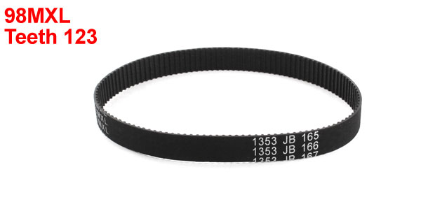 Product Name Timing Belt Model 98MXL Number of Teeth 123 Code Number 037 Teeth Pitch 2.032mm/ 0.08" Belt Width 9.5mm / 0.37" Pitch Length 248.92mm/ 9.8" Material Rubber Color Black Weight 4g Package Content 1 x Timing Belt - Reviews