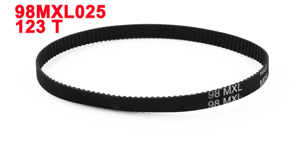 Product Name Timing Belt Model 98MXL025 Code Number 025 Number of Teeth 123 Teeth Pitch 2.032mm / 0.08" Belt Width 6.4mm / 0.25" Pitch Length 249.94mm/ 9.8" Material Rubber Color Black Weight 4g Package Content 1 x Timing Belt - Reviews