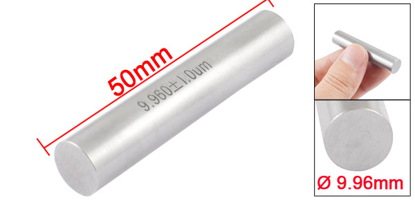 Details9.96mm Diameter Tungsten Carbide Plug Pin Gage Gauge w Plastic Case  Product Name Pin Gauge Material Tungsten Carbide Color Silver Tone Accuracy ±0.001mm Size 9.96 x 50mm/ 0.392" x 2" (D*L) Case Size 13 x 55mm/ 0.55" x 2.2" (D*L) Net Weight 35g Package Content 1 x Pin Gauge 1 x Storage Box