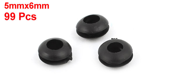 99pcs 5mmx6mm Hole Dia Black Rubber Cable Wiring Grommets