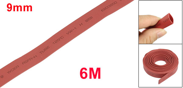 9mm Dia. Heat Shrinkable Tube Shrink Tubing 6M 19.7ft Red