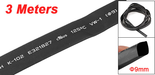 9mm Dia. Heat Shrinkable Tube Shrink Tubing Black 3 Meter